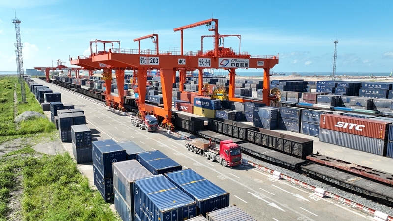 国铁南宁局的统计数据显示:西部陆海新通道铁海联运班列集装箱发送从2017年的3382标箱到2024年的96万标箱,8年增长了283倍。截至2025年8月底,西部陆海新通道铁海联运班列货物运输品类由最初的陶瓷、板材等50多种增加至目前的粮食、汽配件、电脑配件等1316种,辐射我国18省(区市)75市163个站点,通达全球127个国家及地区577个港口。