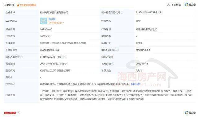 爱企查资料显示,福州海恩游艇发展有限公司成立于2021年8月05日,注册地位于福建省福州市台江区鳌峰街道江滨中大道海峡银行总行大楼靠江侧台江鳌峰洲散货码头。