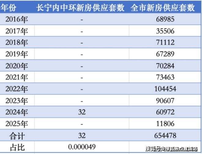 近10年(2016年至今)全上海合计入市新房65万多套,其中属于长宁内中环的只有32套,占比仅约0.000049!不到10万分之五的机会,珍稀程度简直爆表!