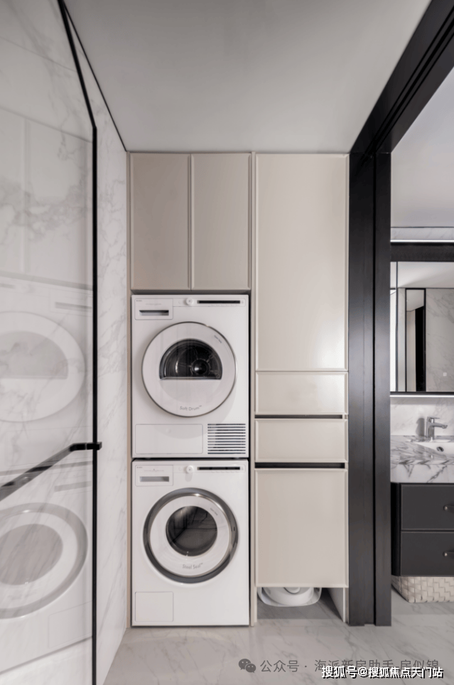 为165㎡以上户型配置独立家政间,并全线选用瑞典百年品牌ASKO洗烘设备,规划洗、烘、熨、藏一站式高效动线,让家务打理成为从容、优雅的日常仪式。