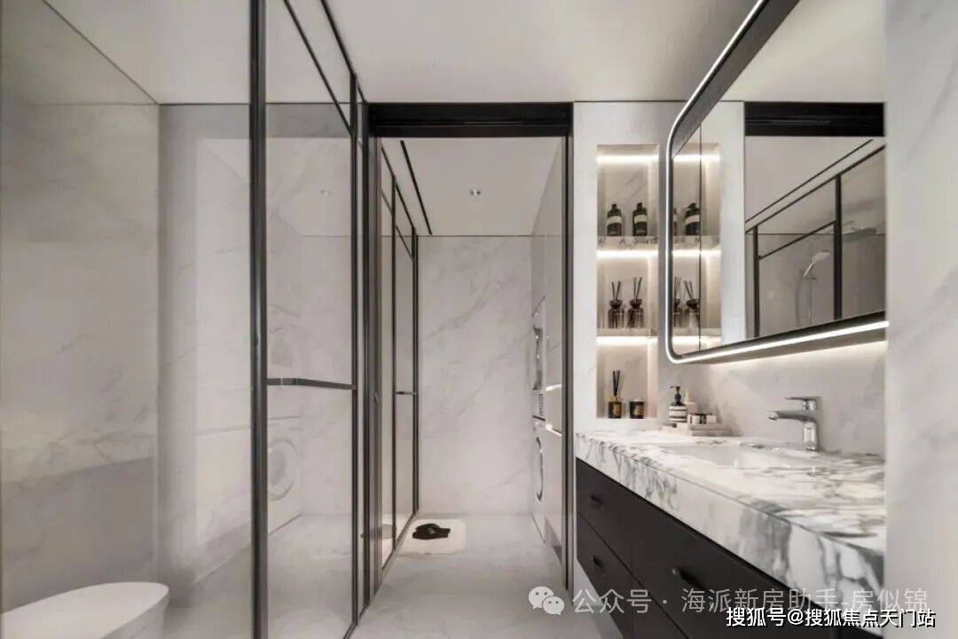 四分离系统,实现独立洗漱台、卫生间、淋浴间、洗衣区互不打扰,将酒店化体验引入住宅。161户型样板间图,以实际交付为准