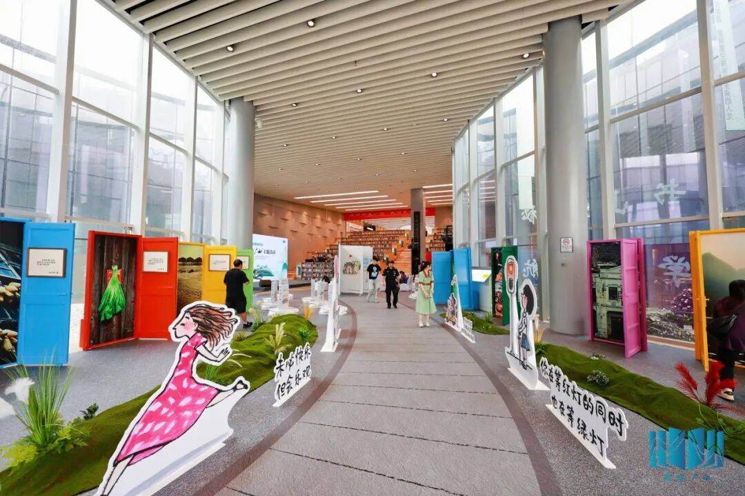 南宁市图书馆城市客厅位于南宁市图书馆一楼,以“文化+美学”的融合方式,将美学原理、美学法则运用到阅读空间中——整体采用“书梯”造型,比喻“书籍是人类进步的阶梯”;原木色的智能书架、笔力浑厚的巨幅书法和色彩斑斓的图书相互呼应,彰显低调、沉稳、有内涵的文化氛围;空中花园的设计,彰显“阅读生态”理念,让阅读更为亲切自然,实现在山水间阅读、在阅读中品味大美广西;功能上集新书推荐、智能书架、自习、休闲、展览、活动等多功能于一体,便于开展图书馆寻宝、阅读分享、展览等活动,形成文献借阅、文化学习、休闲放松、信息交流等综合性文化阵地。
