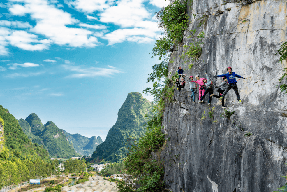 古零攀岩特色小镇位于马山县古零镇,2017年被国家体育总局认证的中国第一个以“攀岩”来命名的特色小镇,称为“中国攀岩小镇”。攀岩小镇依托独特的喀斯特地貌,拥有500多条自然岩壁路线,入选“中国体育旅游精品线路”,成为“体育+旅游+乡村振兴”的示范案例。