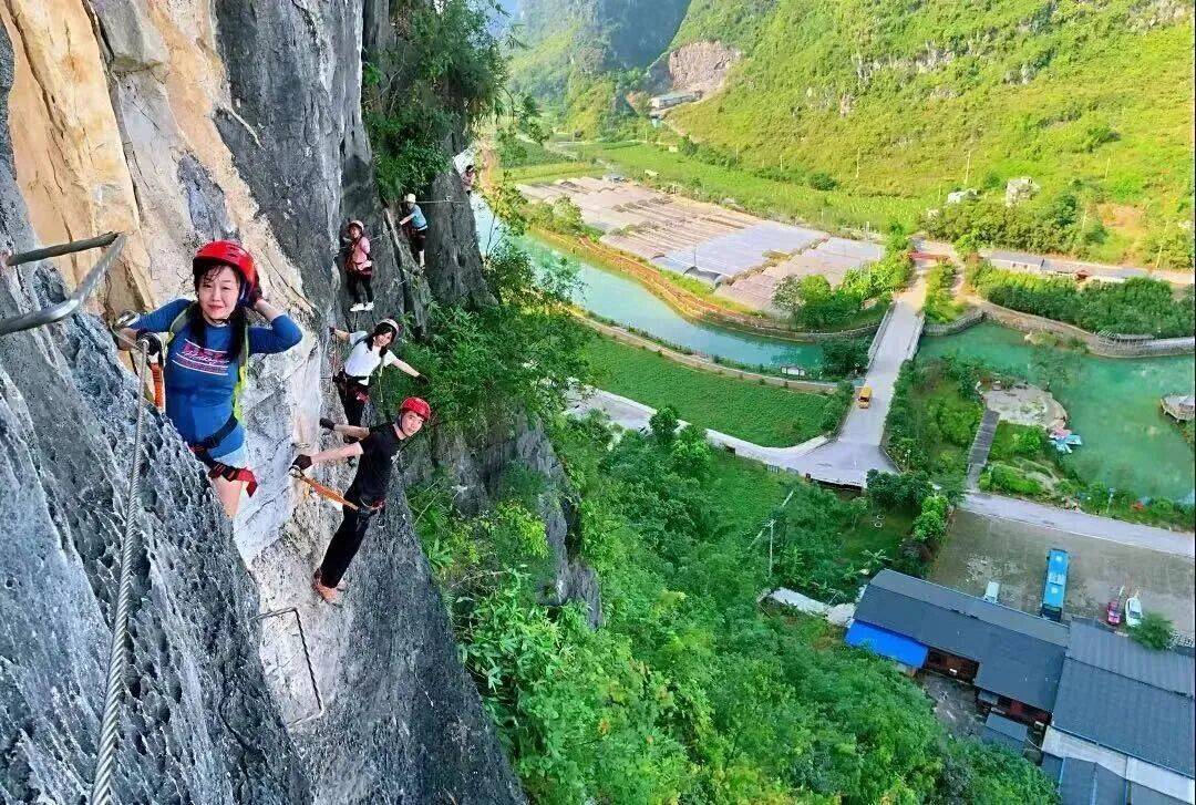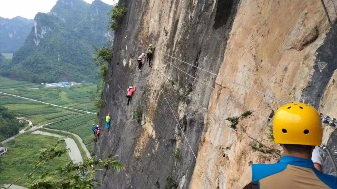 2018年,马山县攀岩特色体育小镇核心区三甲屯引进了飞拉达索道攀岩,由羊山村集体和岚川公司共同投资200万元建设(其中村集体170万,岚川公司30万)。目前已建成2条飞拉达线号线米,垂直落差(最高点与地面距离)60米,体验时长1.5小时;2号线米,垂直(最高点离地面距离)120米,体验时长2.5小时。两条线路均配置国内最先进的专利技术不间断保护,最大程度杜绝了操作失误的隐患,线路设计上充分考虑到自然岩壁的野趣,利用自然岩壁的跌宕起伏设置手脚点位和线路起落。起点设计略有挑战,让体验者在垂直攀爬中压迫潜能,迅速进入状态,在喘息未定中经过惊险刺激的索桥,进入风光奇趣的绝壁。